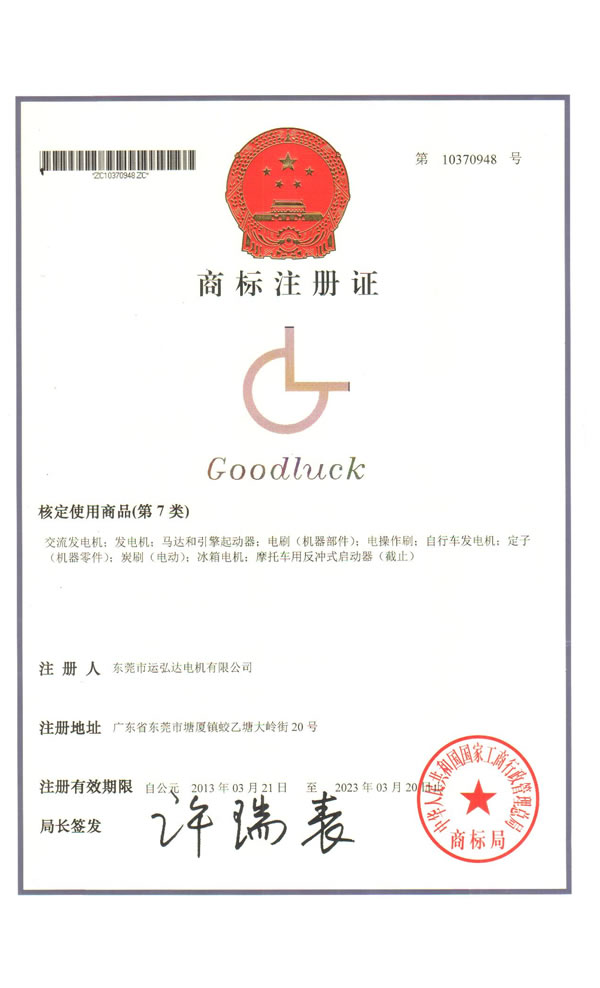 運弘達(dá)商標(biāo)注冊證